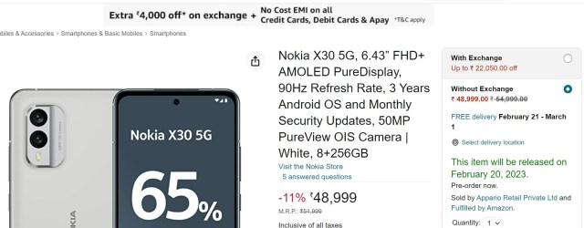 However, this is the price for the pricier 8+256GB Nokia X30 5G model. Also, this is the discounted price since the true one is 54999 INR, which is strangely high.